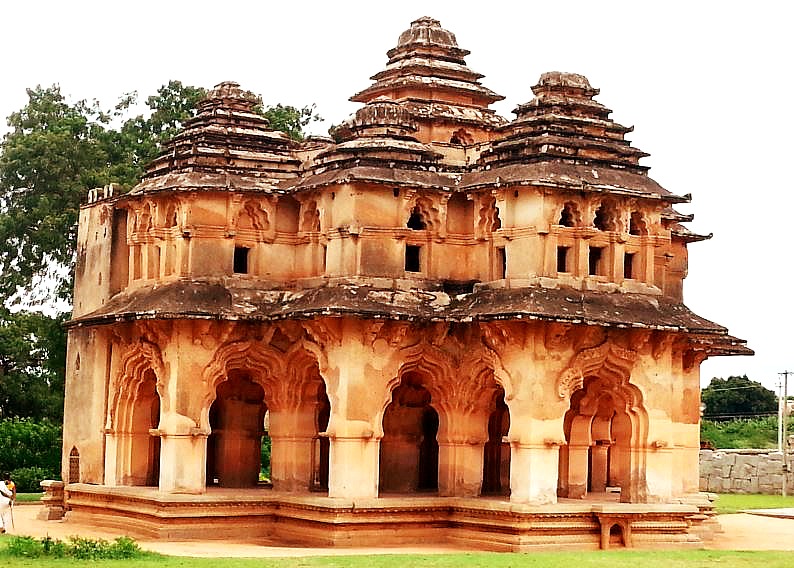 This magnificent 15th century, domed and long rectangular structure, built in the Indo-Islamic style architecture is considered to be the stable for the state elephants. Facing west, it has eleven large domed chambers interconnected with large arched openings. There are shallow niches and doorways in the walls between the arches. The remnants of a structure near the central dome suggest a pillared pavilion on top.